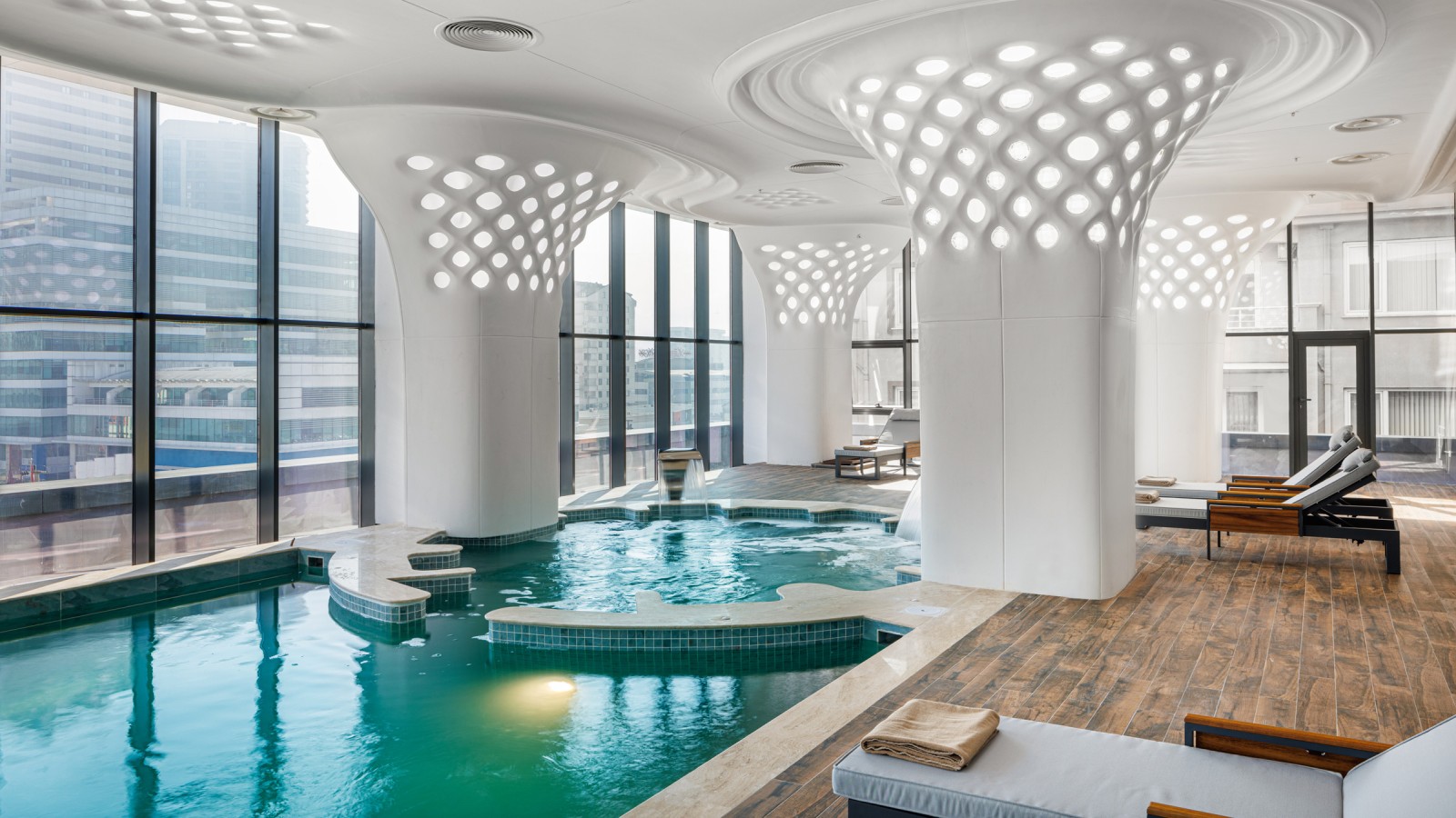 Holul futurist este o piesă centrală spectaculoasă: forme organice, mult alb și coloane înalte de un metru care se ridică de la parter la primul etaj ca elemente structurale. „Contractul nostru de proiect pentru Spitalul Doruk Nilüfer a inclus designul interior”, spune arhitectul Yunus Emre Kara. Scopul a fost de a proiecta un spital care să ofere un nivel de servicii care să respecte standardele internaționale și al cărui design să fie interesant. Acest obiectiv a fost atins: clădirea spectaculoasă a fost preselectată pentru Festivalul Mondial de Arhitectură 2024.